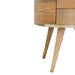 - Artisan Furniture Solid Wood Rounded Bedside Table, 2 drawer - This solid wood bedside has been constructed from 100% solid mango wood in a and offers a unique shaped design with rounded edges. It features 2 mini drawers which come with a shiny knob and Nordic style legs. A great, simple addition to the bedroom.