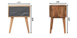 - Slade Nightstand - This nightstand has been constructed from 100% solid mango wood in a fine oak-ish finish. The beautiful slate drawers are definitely prominent in this piece and provide a lovely contrast with the finish of the wood. Other features include nordic style legs and shiny bass knobs.