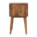- Features: oak-ish, solid wood, mango wood, nordic, bedside, bedroom, shiny brass knobs, slate drawers