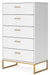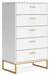 Light and bright, this chest of drawers is inspired by chic design. A matte white finish and goldtone accents offer an elegant touch to this so-cool piece. It beautifully blends the hues of natural living with the edginess of your modern lifestyle.