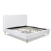 - Fully Upholstered Frame: Includes a fully upholstered bed frame with headboard, side rails, and platform supports, all covered in luxurious fabric for a cohesive and elegant look.