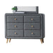 - Sophisticated Design: The light gray fabric with black welt trim and natural wood accents provide a warm, inviting contrast, enhancing the dresser's timeless appeal and sophisticated appearance.