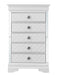 - Chrome Drawer Pulls: Updated traditional design featuring chrome drawer pulls with decorative faux crystals for a touch of elegance.