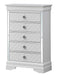 - Embossed "X" Design: Silver champagne embossed "X" design on wood veneers enhances the bedroom group's aesthetics.