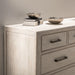 Warm and inviting, the Westmont collection features vintage-inspired silhouettes in a whitewashed finish. A notched arched headboard, footboard, and airy open-shelf nightstand create harmony, accented with contrasting bronze hardware for timeless charm.