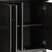 - Features four (4) doors that open to three adjustable shelves for versatile storage