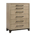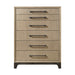 The Sutton Place bedroom collection embodies relaxed contemporary style with a focus on the natural beauty of oak. . Crafted with tight-grain, matched oak veneers over hardwood solids, each piece features a warm two-tone finish of caramel atop a cocoa base. Dark bronze bar pulls add subtle contrast, while select pieces showcase asymmetrical drawer configurations for unique visual appeal. The collection is anchored by a framed panel headboard paired with a panel or storage footboard, bringing a sophisticated yet comfortable look to your bedroom space.