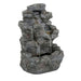 4 Tiered Rock Waterfall Fountain With LED Lights, Outdoor Garden Decor, Weather Resistant - Gray