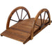 Wooden Garden Bridge Arc Footbridge With Half Wheel Railings Solid Fi - Brown