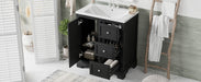 Bathroom Vanity Cabinet With Ceramic Basin, 3 Drawers And Adjustable Shelves - Black