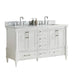 - High-Quality Countertop: Features a 1 2/5 inch thick Grade A engineered Carrara Marble countertop with a 4-inch backsplash, designed to pair with a widespread 3-hole faucet set (not included).