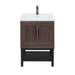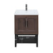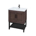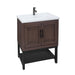 Modern Freestanding Bathroom Vanity With White Ceramic Sink, Hot And Cold Faucet, 2 Door Cabinet & Open Iron Shelf, Magnesium Oxide And Iron Frame - Walnut