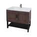Modern Freestanding 36" Bathroom Vanity With Ceramic Sink, Hot And Cold Faucet, 2 Door Cabinet & Open Iron Shelf - Walnut
