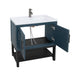 Modern Freestanding Bathroom Vanity With White Ceramic Sink, Hot And Cold Faucet, 2 Door Cabinet & Open Iron Shelf, Magnesium Oxide Frame - Blue