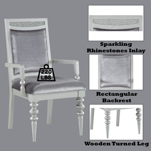 AcmeSophisticated Design: This arm chair features a high rectangular backrest with a wooden frame adorned with sparkling rhinestone inlays, adding el...