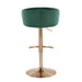 Claire - Contemporary / Glam Adjustable Bar Stool With Rounded T Footrest (Set of 2) - Gold / Green