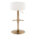 - Chic Modern Design: The Claire Adjustable Bar Stool features a unique style with a low rounded backrest, sleek gold armrests, and a gold metal base, making it an ideal choice for contemporary dining or bar areas.