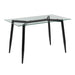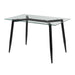 - Materials and Finish: This table features a clear tempered glass top supported by sturdy geometric metal legs, available in two finishes to best suit your space.
