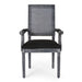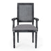 French Country Style Dining Chair With Cane Backrest And Polyester Upholstery - Black