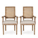 Upholstered Dining Chair With Cane Backrest (Set of 2) - Brown