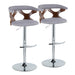 Gardenia - Mid-Century Modern Adjustable Barstool With Swivel With Rounded T Footrest (Set of 2) - Chrome / Walnut / Light Gray