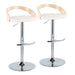Grotto - Contemporary Adjustable Barstool With Swivel With Rounded T Footrest (Set of 2) - Chrome / Natural / White