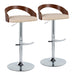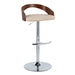 Grotto - Contemporary Adjustable Barstool With Swivel With Rounded T Footrest (Set of 2) - Chrome / Walnut / Cream