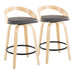 Grotto - Mid-Century Modern Fixed Height Counter Stool With Swivel With Round Footrest (Set of 2) - Natural / Gray