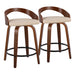 Grotto - Mid-Century Modern Fixed Height Counter Stool & Swivel With Round Footrest (Set of 2) - Walnut / Cream