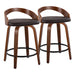 Grotto - Mid-Century Modern Fixed Height Counter Stool & Swivel With Round Footrest (Set of 2) - Walnut / Brown