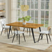 - This handcrafted, modern industrial-style dining table comfortably accommodates up to 8 people and supports up to 220 lbs.