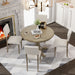 Retro Round Dining Table Set With Curved Trestle Style Table Legs And Upholstered Chairs For Dining Room