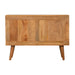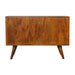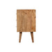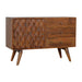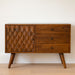 - Carved Sideboard - Enjoy this sideboard in your bedroom or living room, constructed from 100% solid wood in a finish, it features 4 Nordic style legs with 3 deep drawers and 1 cabinet to take care of everyday utility items. The main feature of this product is the raised carved door front which adds a nice touch to the product and will add lasting character to your home.