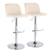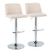 Toriano - Contemporary Adjustable Bar Stool With Rounded T Footrest (Set of 2) - Chrome / Cream