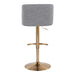 - Material and Construction: A gold metal pedestal base with a rounded T footrest offers stability and durability, supporting a weight limit of up to 250 lbs per stool. This construction ensures long-lasting use and a stylish finish.