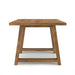 - The thick, rectangular tabletop is made with sustainably sourced solid mango wood in a Burnt Wax finish and perpendicular panels on the short sides for visual contrast.