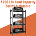 5 Tier Storage Rack, Adjustable Height Shelving, Warehouse Supermarket Basement Storage - Black