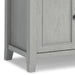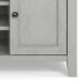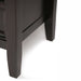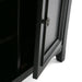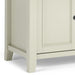• Transitional design includes tapered legs, panel framed door fronts, and antique bronze round decorative knobs
