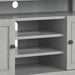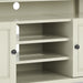 • Features two (2) side doors open to storage areas with two adjustable shelves and a central area with two (2) adjustable shelves and a top open shelf for your media devices.