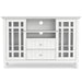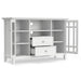 - Features two (2) central drawers with metal glides, open center area with adjustable shelf and two (2) side doors that open to large storage spaces with two (2) shelves each