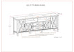 • Transitional design includes shaker style doors featuring X detail in panel, bronze pulls and square tapered legs