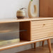 TV Cabinet With Chinese Changhong Glass Doors, Two Drawer Storage Space TV Standing - Natural