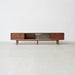 TV Cabinet With Chinese Changhong Glass Doors, Two Drawer Storage Space TV Standing - Walnut