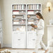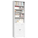 Bookcase Tall 5-Tier Adjustable Storage Shelf With Door Deep - White