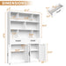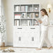 Bookcase Tall With 2 Doors & 2 Drawers, Fixed Open Shelves - White