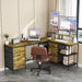 Industrial L Shaped Desk With Power Hub With 6 Drawers And Adjustable Monitor Stands - Brown