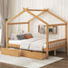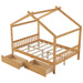 Full Size House Platform Bed With Headboard, Footboard, Roof Design And 2 Storage Drawers - Natural
