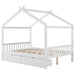 House Style Full Size Platform Bed With Headboard, Footboard, 2 Drawers, And Roof Design - White