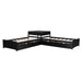L-Shaped Platform Bed With Trundle And Drawers Linked With Built In Desk, Twin - Espresso