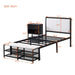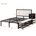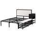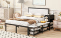 Upgrade your bedroom with this sleek Metal Platform Bed, combining industrial design with modern functionality. The bed features a durable metal frame with soft, comfortable upholstery for ultimate relaxation. With two-tier side storage shelves and a convenient wooden storage cabinet, you'll enjoy ample space to organize your essentials. The cushioned footrest above the storage shelves doubles as a cozy spot to rest your feet at the bed's end.